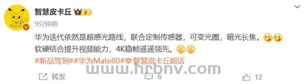 华为Mate 80系列影像配置曝光:搭载定制传感器+可变光圈