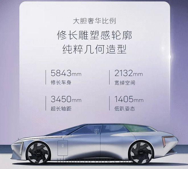 更值得一提的是,通过官方数据,新车的长度5843mm,轴距为3450mm,而车内纵向空间可以来到2132mm,这也不难看出,为何在发布初期官方会让大家去欣赏新车的修长身姿。