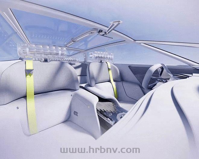 毕竟还是纯粹的概念车,所以在座舱内展示的还是它奢华的一面,比如薰衣草式的玻璃色温、水晶头枕、充气结构3D立体编织的安全带还有座舱内皮质的运用。