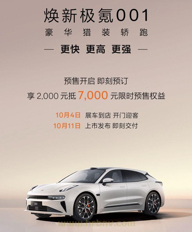 据悉,展车将于10月4日起陆续抵达全国极氪门店,并于10月11日正式上市,届时将同步开启交付。作为参考,现款极氪001售价区间为25.90-32.90万元。