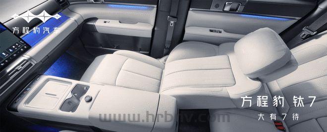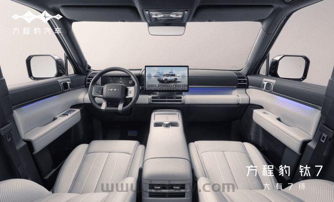 在内装方面,钛7采用了独特的星际方舟设计语言,将 “方” 与 “圆”进行融合。“方”的风格更多的去营造空间感以及硬核的定位,而“圆” 形包边设计则让内装风格更有温馨体验,为家庭出行增添暖意。另外,双层环绕悬浮式设计的运用,进一步延伸了车内视野的开阔感,使其成为目前方程豹产品中设计最时尚、最适合家用的车型。在内饰色彩选择上,钛7推出了雪隐灰、日蚀蓝和暮云橙三款配色。