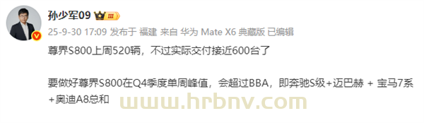 余承东吹的牛又要实现!尊界S800销量将超迈巴赫+奔驰S+宝马7系+奥迪A8