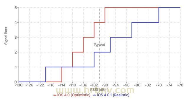 Gold指出,实际算法很简单——系统测得当前信号强度后,根据内存里的阈值逐一比较,显示相应的格数。但由于查找表设计失误,“五格”满格显示条件过于宽松,造成用户误以为信号很强,实际稍有变化便显著掉格。