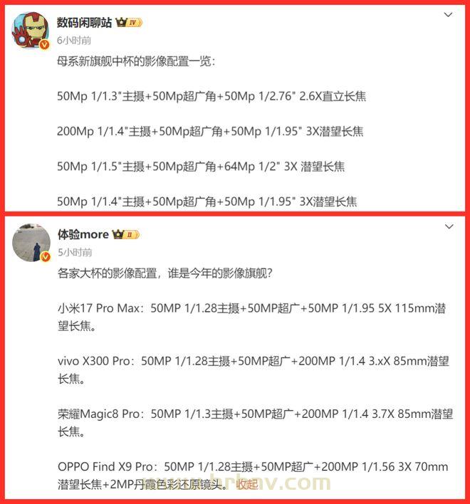 可以说一场关于“谁才是今年真正的影像旗舰”的讨论已然升温,况且从已流出的配置表来看,这场竞赛呈现出前所未有的技术深度与战略分化。