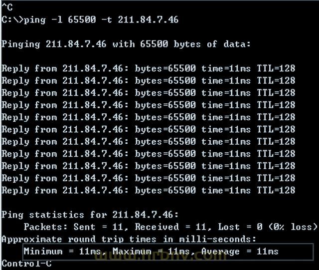 -l size:此选项允许您指定发送到目标主机的数据包大小。在Windows系统中,默认的ping数据包大小为32字节,而最大可发送的数据包大小为65500字节。值得注意的是,当发送的数据包尺寸达到或超过65500字节时,有可能导致接收方计算机崩溃。因此,微软对此数值进行了限制。然而,当结合其他参数使用时,此选项可能产生重大影响,例如攻击者可以利用-t参数进行DOS攻击。因此,在使用时务必谨慎,避免对他人计算机造成损害。
