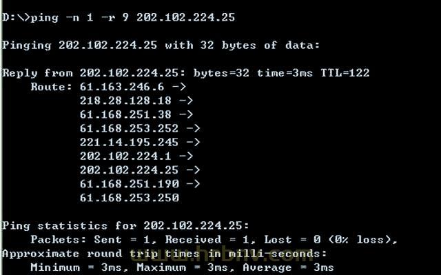 ping -n 1 -r 9 202.102.224.25