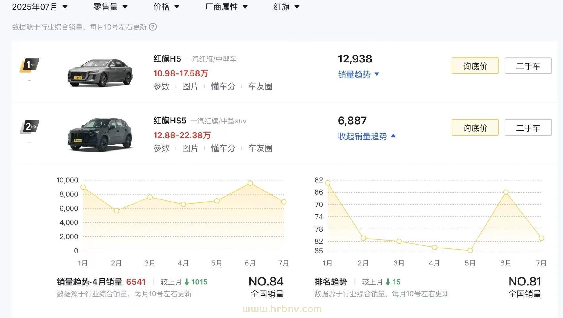 从销量来看,红旗HS5 7月销量为6887辆,相比6月有所下滑,但仍是当月红旗品牌销量第二位车型。这说明HS5的市场基础依然稳固,但也面临着越来越激烈的竞争。随着合资品牌紧凑型SUV价格下探和中型SUV配置升级,红旗HS5需要不断提升自身竞争力。