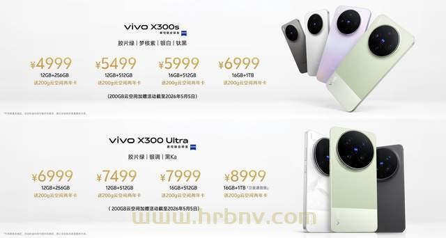 vivo X300s售价4999元起,vivo X300 Ultra售价6999元起。首销购机立赠价值404元200GB云空间两年卡,参与以旧换新,vivo老用户享指定补贴,至高立省1000元,至高享24期分期免息,还有价值超2000元的新机权益大礼包。vivo与芝麻信用达成合作,开放200个vivo蔡司增距镜 G2 Ultra试用名额,先到先得。vivo蔡司增距镜 G2售价999元,可适配X300 Ultra和X300s;vivo蔡司增距镜 G2 Ultra售价1999元,可适配X300 Ultra。vivo X300s摄影师套装同步推出,仅需7999元;全家福X300 Ultra摄影师套装,内含16 + 1TB手机、两颗增距镜、手柄、脚架环以及价值499的定制摄影包,一套下单仅需11999元,与手机同步开售。