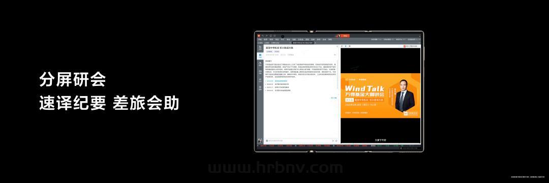 改变的不只是办公应用。对金融从业者来说,Wind 金融终端是日常工作不可或缺的工具,但以往更多局限在 PC,移动端的体验难以完全承载专业需求。而在华为 Mate XTs 上,鸿蒙版 Wind 金融终端 的界面随着大屏展开而延展,不仅能并行打开行情、资讯和研究报告,还可以在会议中分屏实时生成双语字幕和两分钟的纪要摘要。
