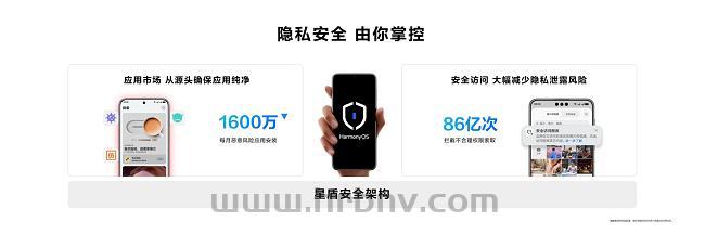 智能终端的生态化发展,在便利智能生活的同时,也对安全提出更大的考验,做到“隐私安全 由你掌控”,这是鸿蒙系统的核心理念,也是鸿蒙系统安全的真实体现。由星盾安全架构提供保障,从源头确保应用纯净,安全访问机制拦截不合理权限86亿次。尤其是AI主动防诈的加入,可以主动拦截一些危险信息、智能识别诈骗场景,并可在支付环节阻断交易,全方位守护用户隐私和数据安全。