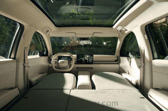 为了和外观配色统一,ID. CROSS概念车的内饰也被设计为堪比绿洲的惬意空间,无论是选材还是织物的包覆的触面都让人感到舒适。而预设的灯光、声效和空调模式将温暖的“香草茶色(Vanilla Chai)”内饰转变为持续舒缓身心的休闲空间。而围绕大空间的亮点,还有特别设计的座椅,这些座椅可完全放倒,形成类似Bulli的躺卧区。